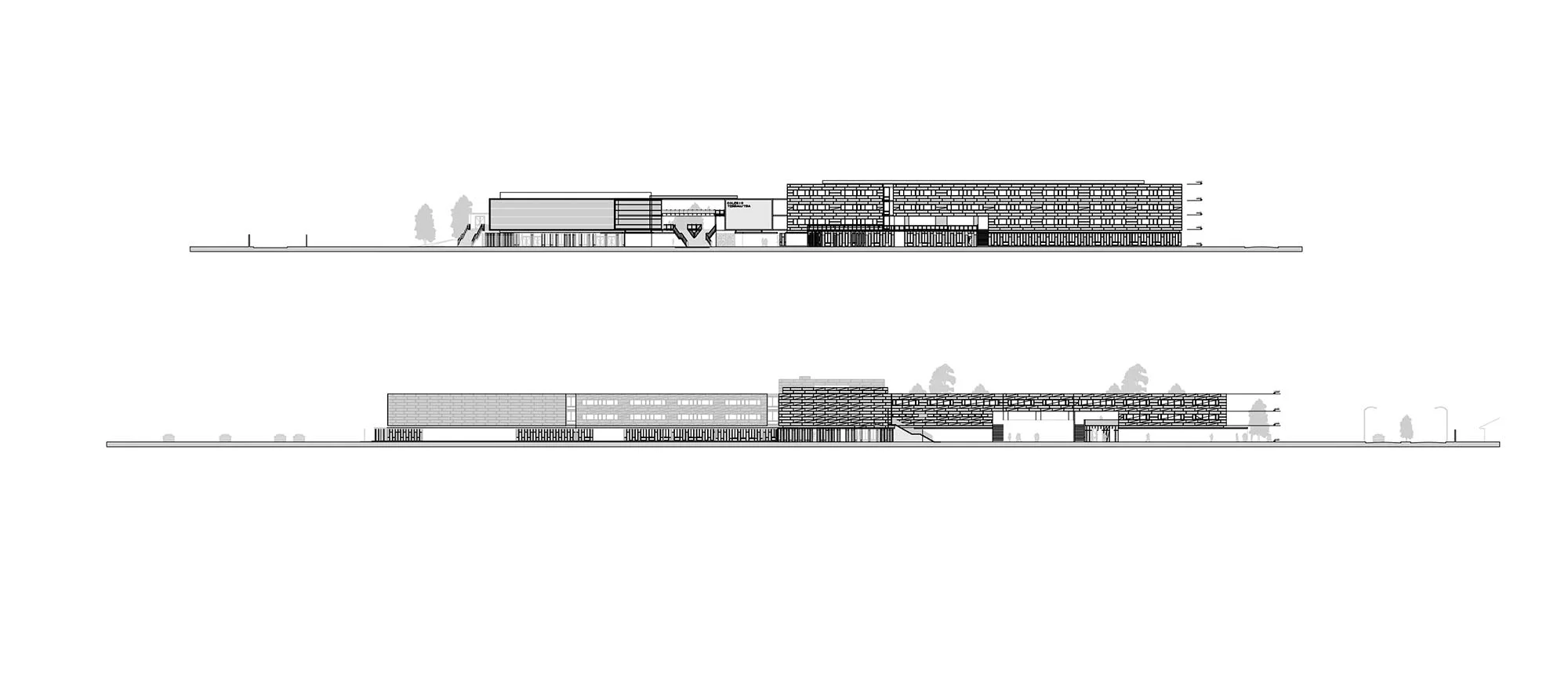 La resolución formal del proyecto caracterizado por el contraste de geometrías oblicuas y volúmenes rectos se agudiza en el uso del color y los materiales y es la vuelta a las operaciones proyectuales cuyo resultado esta basado en el principio de las oposiciones para la transformación de sus datos.