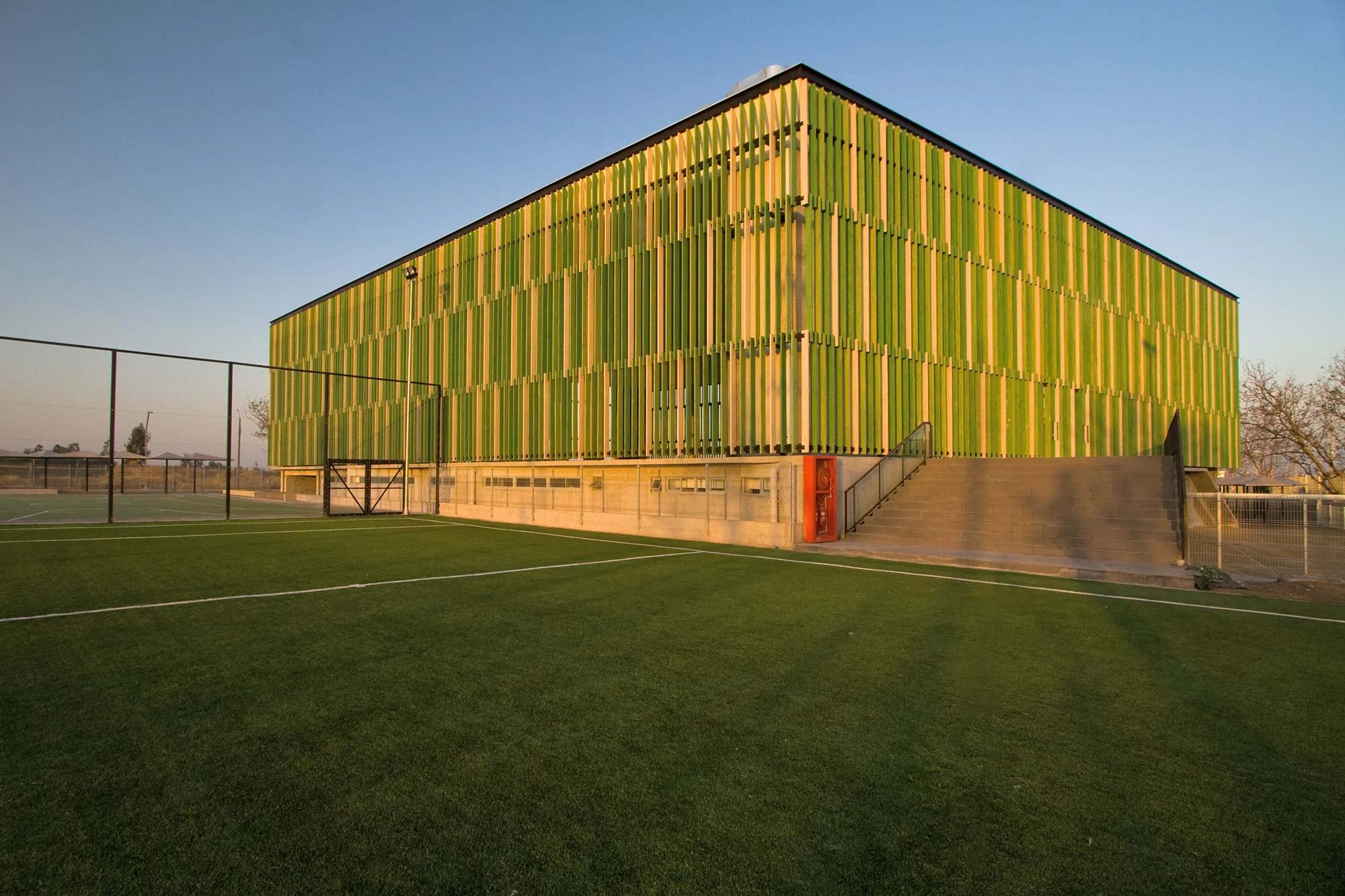 La resolución formal del proyecto es una continuación del Colegio antes mencionado, repitiendo la aplicación de contrastes, en este caso reflejado en el uso del hormigón visto y de revestimientos de madera impregnada en distintas gamas de verde, que hacen destacar los volúmenes principales del conjunto.