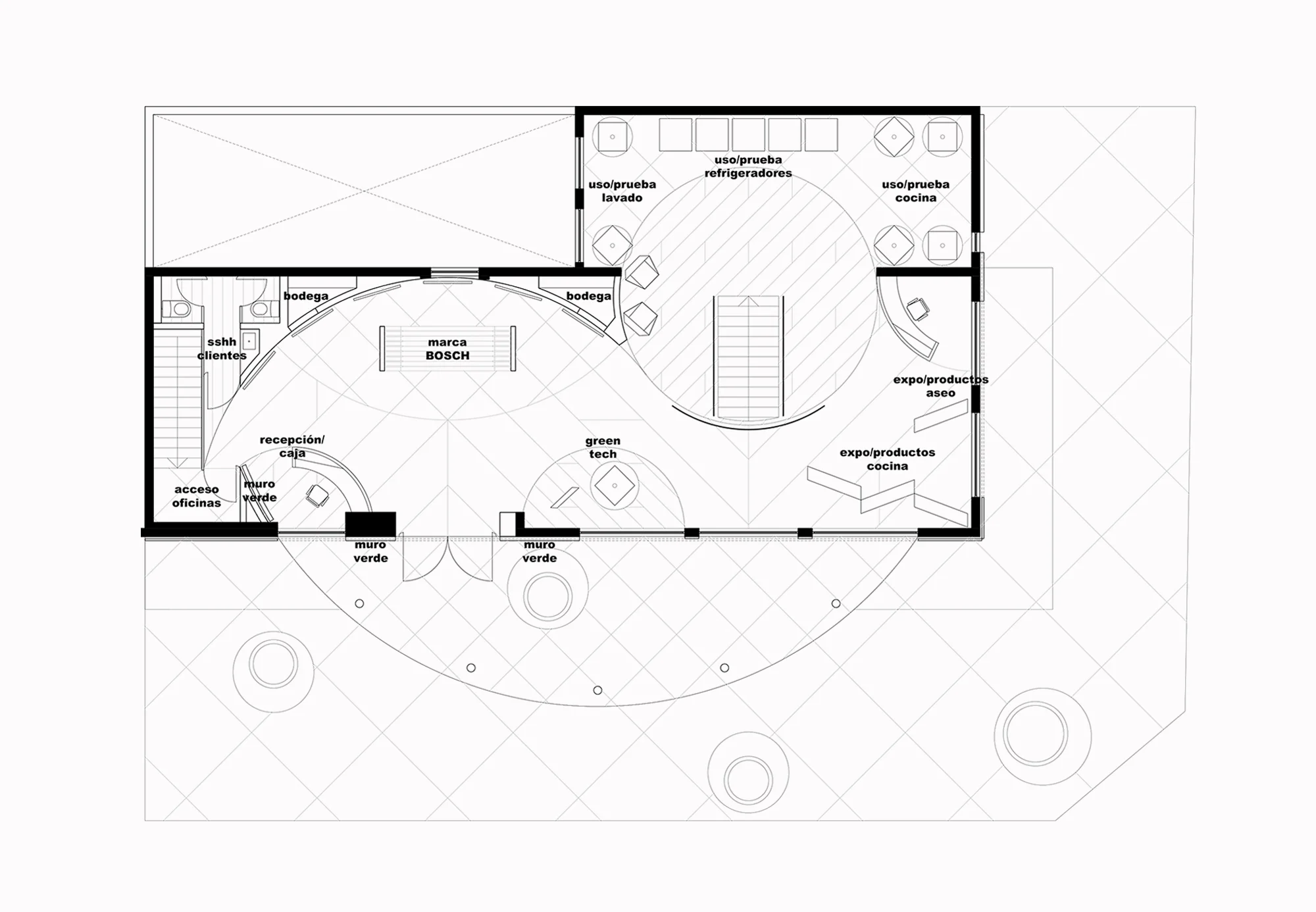 De este modo, proponemos el diseño de una experiencia de recorrido que permita vivir los valores de la marca en el contexto de la vida cotidiana. No se proponen cocinas tipos, se proponen estilos de vida de la mano de las distintas líneas de productos de Bosch. Proponemos poner la arquitectura al servicio de la experiencia de recorrido de “Casa Bosch”.